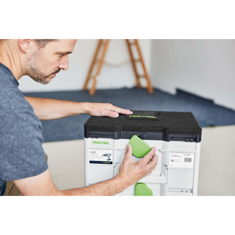 - Możliwość łączenia: z wieloma odkurzaczami Festool, Systainerami i SYS-RB. Szybkie i bezpieczne mocowanie za pomocą T-LOC