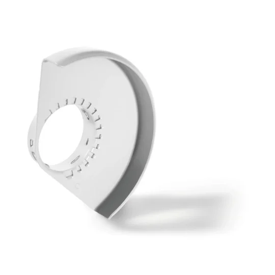 - Osłona chroni przed iskrami podczas pracy z użyciem tarcz listkowych i tarcz do obróbki zgrubnej