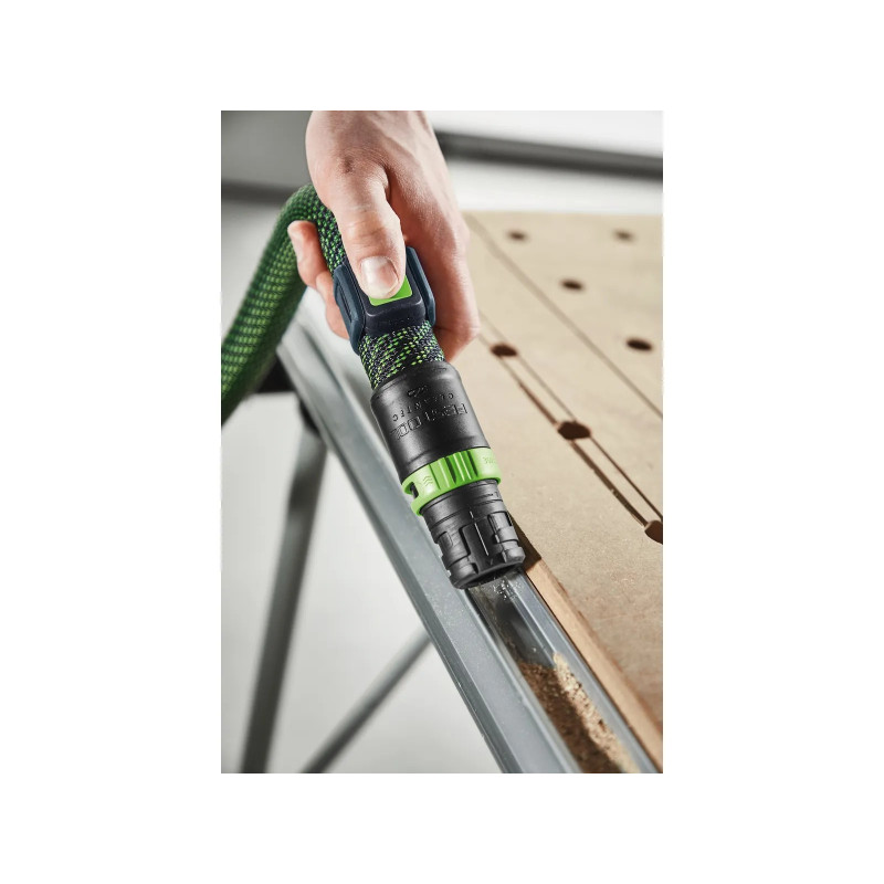 Festool CT-F I to zestaw łączący odkurzacze CLEANTEC z narzędziami akumulatorowymi poprzez technologię Bluetooth®. Odkurzacz uruchamia się automatycznie wraz z elektronarzędziem, zapewniając bezpyłową pracę bez kabli. Dodatkowy pilot przy wężu ssącym pozwala na przełączenie w tryb czyszczenia jednym przyciskiem.