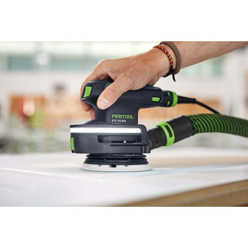 Moduł oświetlenia Festool uzupełnia szlifierki kompaktowe o kluczowy element: doskonałą widoczność. Ukierunkowane doświetlenie pozwala natychmiast dostrzec nierówności, umożliwiając osiąganie bardziej precyzyjnych rezultatów bez konieczności dokonywania poprawek. Dwa poziomy intensywności światła umożliwiają szybkie dopasowanie jasności do sytuacji roboczej i eliminują ryzyko oślepienia. Automatyczne uruchamianie dzięki wykrywaniu wibracji sprawia, że światło włącza się dokładnie wtedy, gdy jest potrzebne. Wystarczy podłączyć bez użycia narzędzi i rozpocząć pracę – teraz z maksymalną kontrolą gwarantującą uzyskanie perfekcyjnych powierzchni.