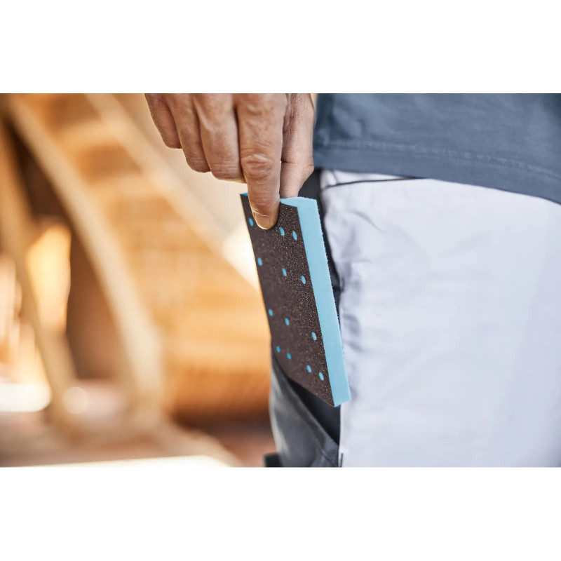 - Kompatybilny z drewnem, powierzchniami lakierowanymi, masami szpachlowymi i nowoczesnymi powłokami – w tym lakierami zgodnymi z normą VOC – zapewnia gładkie, równomierne rezultaty powierzchniach trudnych w obróbce