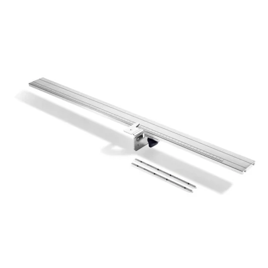 Przykładnicę kątową FS-WA można rozbudować za pomocą przedłużenia ze skalą i zderzakiem przesuwnym. Dzięki temu możliwe jest łatwe przycinanie na wymiar z powtarzalną dokładnością.