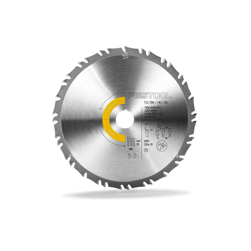 Cienkotnąca tarcza pilarska Festool HW 160x1,6x20 FWWW35 wyposażona w drobne uzębienie dla uzyskania czystego cięcia bez wyrw. Grubość 1,6 mm dostosowana do akumulatorowych ręcznych pilarek tarczowych. Wysokiej jakości stal i zęby z drobnoziarnistego węglika spiekanego zapewniają trwałość, a specjalne uzębienie – pięć grup po siedem zębów z sześcioma zębami przemiennymi i jednym płaskim – gwarantuje optymalną wydajność i doskonałą jakość cięcia.